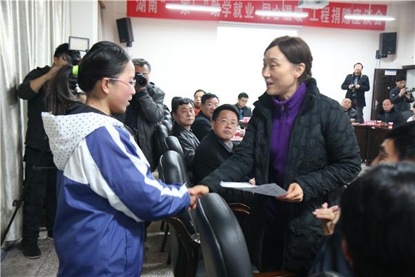 24日上午,李微微一行风尘仆仆赶往张家界旅游学校,出席湖南“一家一”助学就业•同心温暖工程致公系列班开班仪式。包括菲律宾、加拿大、阿根廷等30多个国家的海外洪门捐资20万元,致公党中央致福慈善基金会捐资20万元,张家界市永定区财政配套40万元共80万元,资助张家界旅游学校200名贫困学生完成学业。李微微、邹文辉分别为公益伙伴授牌。在受助学生的感恩诗朗诵后,崔永平作总结讲话。截至目前,湖南“一家一”助学就业•同心温暖工程已有54家慈善企业、爱心团体成为项目公益伙伴,已筹措资金1600多万元,在27所职业院校资助学生4000多人。(通讯员 谭圣林 杨鹏飞)