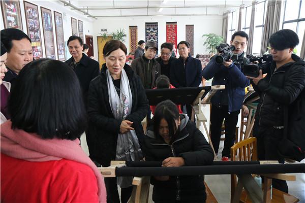 23日上午,李微微一行来到湘西民族职业技术学院,出席湖南“一家一”助学就业·同心温暖工程“丽景·工艺美术班”、“嘉诚·畜牧兽医班”、“浏阳河光彩基金班”、“开源光彩基金班”签约仪式。仪式由邹文辉主持。深圳丽景嘉诚置业发展有限公司捐资40 万元、开源·浏阳河集团出资40万元共80万元,资助湘西民族职业技术学院200名贫困学生完成学业,每生每年资助生活费2000元,共资助两年。李微微为公益伙伴企业授牌。在湘西民族职业技术学院党委书记吴正有、院长李光寒的陪同下,李微微等饶有兴致地参观了学院受助学生的旅游工艺作品展。