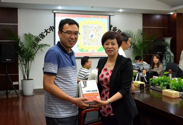 湖南省大中专学校学生信息咨询与就业指导中心主任曹敏为青年代表赠书。