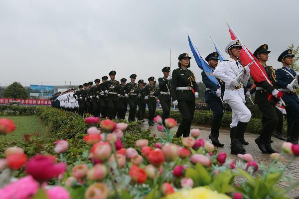 9月20号上午,由省委教育工委、省全民国防教育委员会办公室主办,湖南教育电视台承办,长沙航空职业技术学院、芷江中国人民抗日战争胜利纪念馆协办的“勿忘国耻 圆梦中华——纪念抗日战争暨世界反法西斯战争胜利70周年湖南省高校国旗班风采展示大赛决赛”在长沙航空职业技术学院隆重举行,省委教育工委委员、教育厅党组成员陈飞跃出席活动并发表讲话。