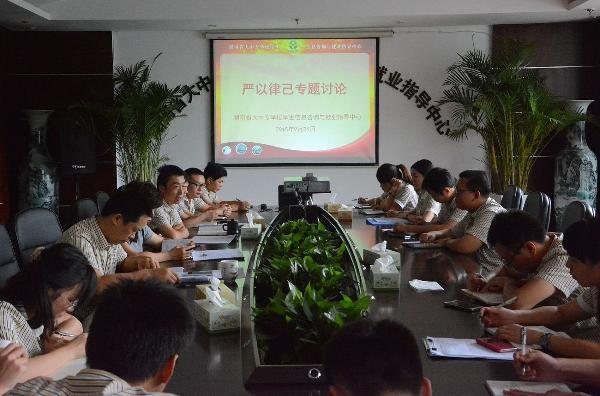 湖南省大中专学校学生信息咨询与就业指导中心“严以律己”专题讨论现场。