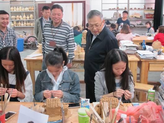 在湖南科技职业学院,王柯敏厅长在陶瓷实训室实地观摩实践课堂。