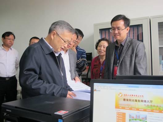 在湖南工业职业技术学院学生教育阳光服务中心,王柯敏厅长仔细翻阅工作台账,浏览网上受理事项的办结情况,对该中心着力打造的“小窗口、大网络”互联网+模式和24小时不下班的温馨服务现场点赞。