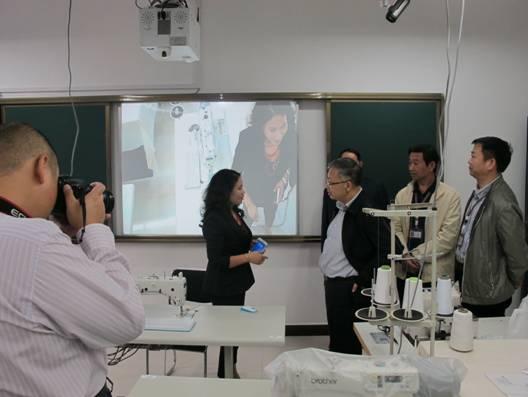 在湖南科技职业学院服装设计专业的实景课堂上,王柯敏厅长与任课教师面对面交流,深入了解信息化教学为课堂带来的巨大变化。