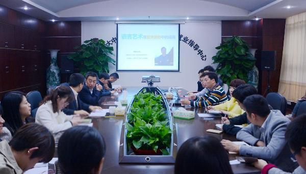 湖南师范大学历史文化学院党委书记、湖南省大众语言艺术研究会秘书长杨志勇博士作“语言服务在就业服务中的运用”专题讲座。