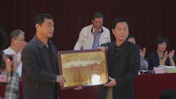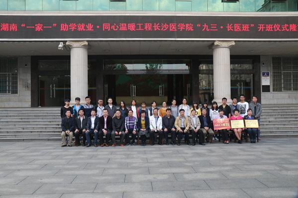 “九三·长医班”是由长沙医学院自筹资金40万元,在学院开设2个班,这是继2013年捐资40万元在安化县职业中专开办2个同心班之后的又一善举;崔永平为项目实施学校授牌;何彬生在致辞中表示,将以实施湖南“一家一”助学就业·同心温暖工程为契机,加快“千年长医”建设,努力为国家培养更多“下得去、留得住、用得上”的医药卫生人才。