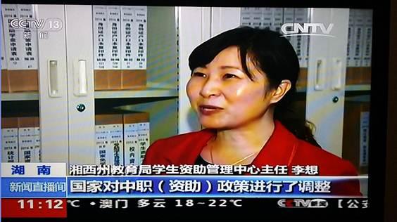 11月29日,中央电视台综合频道在“新闻联播”栏目报道我国“教育健康扶贫,为贫困人口增内生动力”新闻时,再次对我省落实国家学生资助政策、实施精准资助工作进行了报道。报道称,“在湖南,免除学生学费和精准资助政策,破除了贫困学生读书难的问题”,记者采访了长沙建筑工程学校学生、湘西自治州泸溪县孤儿李涛,以李涛通过享受中等职业教育免学费政策,初中毕业后避免辍学而顺利接受中等职业教育为例,报道了我省落实国家资助政策、推动教育扶贫工作所取得的良好成效。