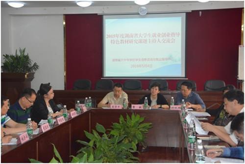 近日,湖南省大学生就业创业指导特色教材课题主持人交流会在省就业指导中心举行,中南大学、湖南师范大学、湖南中医药大学、南华大学等高校的30余名就业创业指导特色教材课题负责人与会。会议由湖南省大中专学校学生信息咨询与就业指导中心主任曹敏主持,副主任夏学军、钟秋明等出席会议。