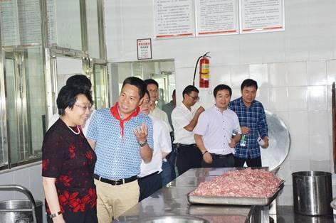 全国政协委员张改琴(左一)在涟源市三一学校食堂操作间实地察看