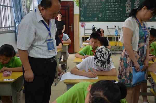 主任督学董海军、责任督学彭运莲巡查荷塘小学毕业考试的考场