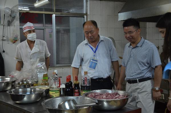 最后,他们巡查了学校食堂和加工间,肯定了学校一流的食堂设施、规范的员工操作、卫生干净的用餐环境。