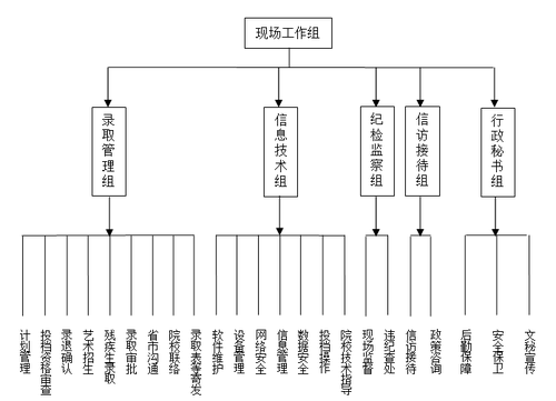 各工作组要针对录取过程中可能出现的各种情况和问题,制定应急预案,确保一旦出现异常情况和突发问题能快速反应、妥善处置。在遇到突发问题时必须第一时间逐级上报,并在录取现场协调处置小组统一指挥下启动应急预案,采取紧急措施。