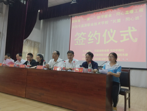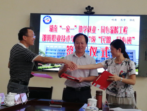 本次签约的3个“民盟·同心班”由湖南省慈善总会民盟爱心基金捐款40万元,民盟邵阳市委配套20万元,共60万元,在邵阳职业技术学院、武冈市蓝深职业技术学校、通道县职业中专各办班1个,共资助150名像李妍这样的家庭困难学生完成职业教育学业并推荐实习就业。截止目前,民盟湖南省委已开办19个“民盟·同心班”。