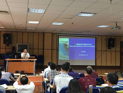 随后,华东师范大学范国睿教授进行了《大数据时代的教育变革》的讲座,大数据时代的悄然来临,过去无法收集与分析的数据都被新的技术手段赋予了可能性,谁能对大数据的挖掘更为深刻,谁就会在行业发展中抢占先机,教育领域也是如此。他对大数据的技术基础、人工智能挑战学习的创新、教育云服务以及未来的发展等方面作了举例说明,开篇就为高中学科精英教师送上了丰盛的营养大餐。