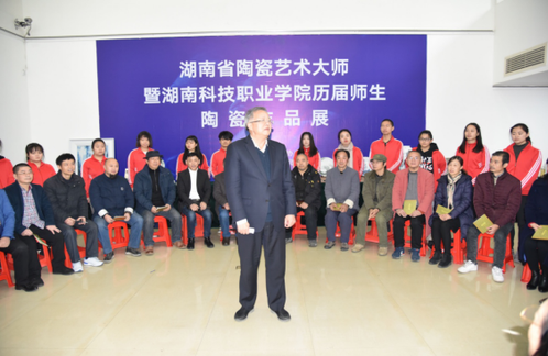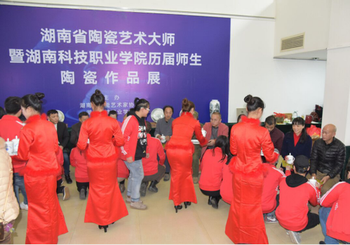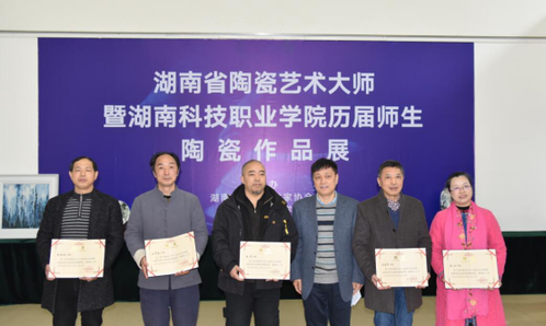 12月16日,“湖南省陶瓷艺术大师暨湖南科技职业学院历届师生陶艺作品展”在长沙市简牍博物馆举行。省政协副主席、省文联主席欧阳斌,人大常委会原副主任刘玉娥,省人民检察院原检察长张树海,省文联党组成员、副主席唐贵平,省民政厅民间组织管理局副局长陈群,省文联人事处副处长徐俐嫔及湖南科技职业学院党委书记李三福、校长戚人杰、副校长黎晓明等领导出席作品展开幕式活动,该校陶瓷设计学院负责人、学校特聘的艺术大师和陶瓷设计学院、商学院师生100余人参加了开幕式。欧阳斌宣布展览开幕。戚人杰主持开幕式。