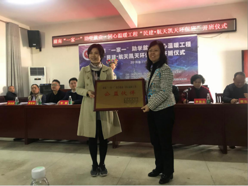 “一个人的努力是加法,一个团队的努力是乘法。正是有了‘一家一’项目爱心团队的资助,寒门学子才有了温暖的冬天。”在11月23日湖南“一家一”“民建·航天凯天环保班”的开班仪式上,靖州苗族侗族自治县职业中专学校校长侯益平如是感言。