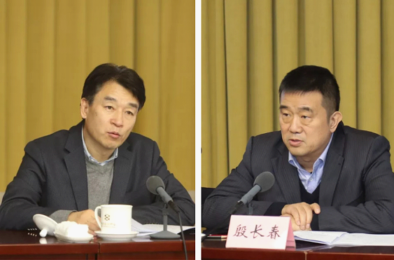 中国教科院院长崔保师(图左)作工作报告,中国教科院党委书记殷长春(图右)主持会议
