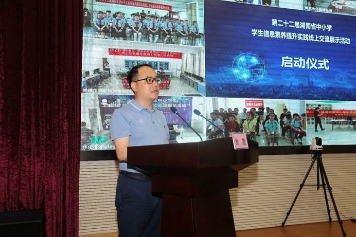 5月14日,第二十二届全省中小学生信息素养提升实践线上交流展示活动,以线上直播方式举行简易而隆重的开幕式。省教育厅基础教育处处长曾四清、副处长彭志远出席活动。活动组委会主任、省电化教育馆馆长吴晟介绍活动概况并提出具体要求,裁判员代表、参赛选手代表在市州分会场作线上宣誓。开幕式由省电教馆工会主席熊艳燕主持,副馆长石福新、李陆军、邹淑萍与全馆干部职工在主会场参加开幕式。