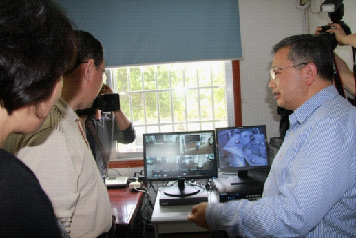 一进入常德市教育局,王柯敏的目光就被包围着市本级保密室的“三层监控”所吸引——试卷保管室6个摄像头、值班室2个、办公楼大厅今年还新增了5个,当了解到短短几分钟的路程,已经被13个摄像头24小时全方位监控时,王柯敏十分高兴。他指出,试卷保密工作是保证高考安全、顺利进行的重要环节,从试卷的接收、分发,到对保密室的监控和监控录像的保存、回放,每个环节都要慎之又慎,不容半点马虎。