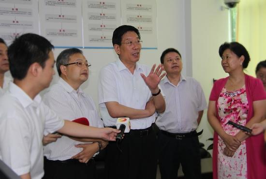 徐守盛首先来到省教育厅的电子政务室,在宽大的电子显示屏上,湖南教育政务网各主要栏目一目了然。“哪些栏目是老百姓关注度最高的?哪些是群众访问次数最多的?哪些是民众关注的焦点与热点教育问题?”徐守盛一边饶有兴致地浏览着网站页面,一边仔细地询问。省委教育工委书记、省教育厅厅长王柯敏在一旁介绍说,省教育厅的门户网设政务公开、政民互动、在线服务三大版块,2011年总访问量达到2亿人次,在全国同类教育网站访问量排名第一,被民众赞誉为值得信赖的教育政务公开“直通车”。徐守盛对省教育厅着力建设政务公开信息平台给予了充分肯定,他指出,做好政务公开是关注民生、展示民意的具体体现,是确保权力在阳光下行政、自觉接受老百姓的监督的基本要求,省教育厅的网上政务公开工作已走在了全省前列。
