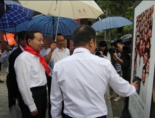 由毛主席题写校名并给予亲切关怀的湘潭市韶山学校,是袁贵仁考察湖南义务教育的最后一所学校。来到韶山学校门口时,一群身着整齐校服、戴着红领巾的同学早早等候。看到袁贵仁一行到来,同学们致以热烈的掌声。一位女孩走出队伍,来到袁贵仁前面,“非常欢迎您来学校视察,这条鲜艳的红领巾献给您!”袁贵仁弯下腰,欣然让小女孩为他系上红领巾,脸上洋溢着和蔼的笑容。学校校长庞石林向袁贵仁介绍,他们学校有两件宝,一件是学校牌匾,“韶山学校”四个字是毛主席亲自题写的,一件是1959年毛主席回韶山学校,与同学们照的合影。那可是一张“能听见笑声的照片”。袁贵仁仔细端详那张珍贵的合影,深情地询问当时的细节。随后,袁贵仁一一询问学校的基本情况和远期发展规划,鼓励学校创新教育观念和教学模式,不断提升教学质量,培养出高素质的人才,特别是在进一步弘扬爱国主义教育方面,韶山学校要充分利用得天独厚的资源,办成名副其实的爱国主义教育基地。