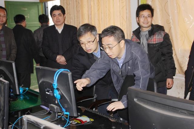 在泸溪县浦市镇马王溪村小调研农村学校现代信息技术教育。