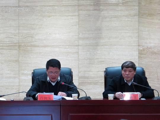 肖国安(左)主持会议,周德义(右)作工作报告。
