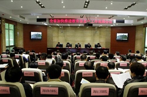 省教育厅副巡视员贺安溪在会上宣读关于调整湖南省教育厅教育信息化工作领导小组的通知。省教育厅教育信息化工作领导小组成员、省教育厅相关职能处室负责人、职能机构负责人、企业代表以及在长沙的高校主要负责人在视频会议主会场参加会议。省内其他县市区教育局主要负责人及其他地区高校负责人在分会场参加会议。