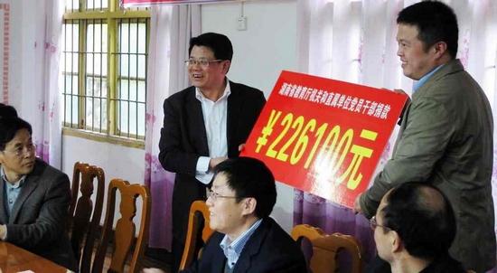 肖国安代表厅机关和直属单位党员、干部向东安县贫困学生捐献爱心款。