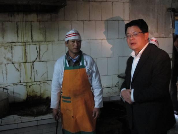 肖国安深入学校走访调研,与学生食堂的师傅现场交流。