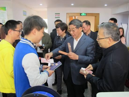 4月21日,教育部高校学生司司长王建国来湘对湖南大学生创业情况进行了专题调研。在湖南省大学生创新创业孵化基地实地考察时,王建国司长和王柯敏厅长现场购买大学生创业团队的创意产品。