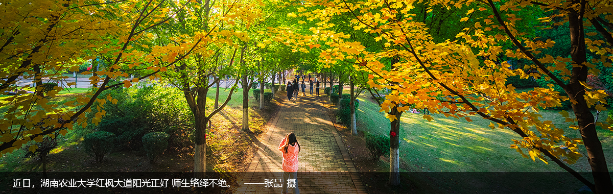 近日,湖南农业大学红枫大道阳光正好师生络绎不绝。——张喆 摄