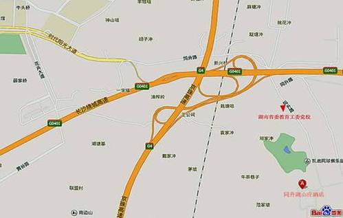 ◆高铁站①长沙火车南站站乘坐机场快线→长沙汽车南站站换乘20路→同升湖通程山庄酒店站→往回走200米。