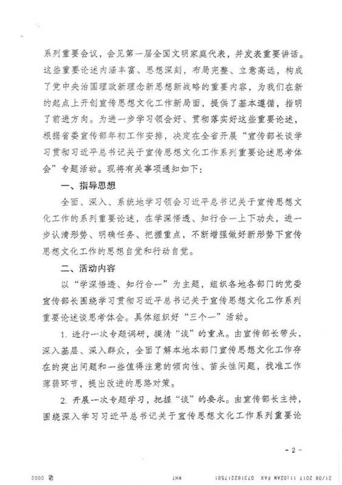 转发中共湖南省委宣传部 关于开展“宣传部长谈学习贯彻习近平总书记 关于宣传思想文化工作系列重要论述 思考体会”专题活动的通知 |