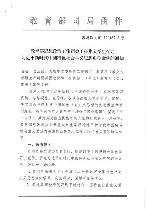 湘教通[2018 ]143 号 转发教育部思想政治工作司关于征集 大学生学习习近平新时代中国特色 社会主义思想典型案例的通知