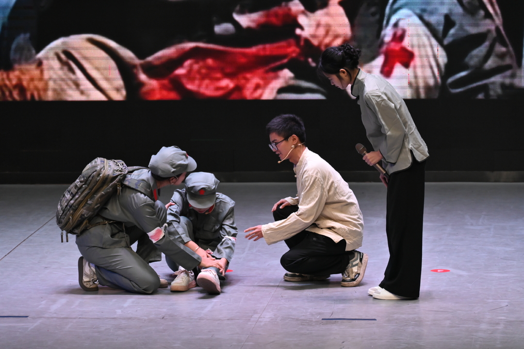 比赛尾声,报告厅内响起《歌唱祖国》的旋律,全场观众挥舞着手中的五星红旗,现场成了红色的海洋。一名新生感慨说:“原来‘四史’不是课本上的文字,是一个个‘活着’的故事,是我们该传承的‘精神密码’。”