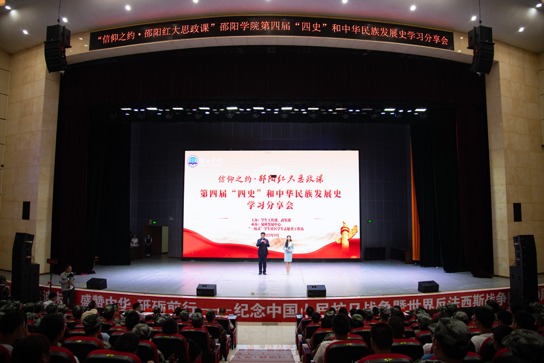 9月30日,邵阳学院七里坪校区逸夫图书信息大楼报告厅内,掌声与共鸣交织成热烈的“思想浪潮”。“信仰之约·邵阳红大思政课”——第四届“四史”和中华民族发展史学习分享会在此火热开讲,主会场1000余名师生与分会场4000余名观众共同沉浸在“历史与青年的对话”中。学校党委书记宁立伟,党委副书记赵敏丽,党委委员、纪委书记、省监委驻邵阳学院监察专员李学勇,党委委员、副校长黄秋生出席活动,见证这场“用故事传递信仰”的精神盛宴。