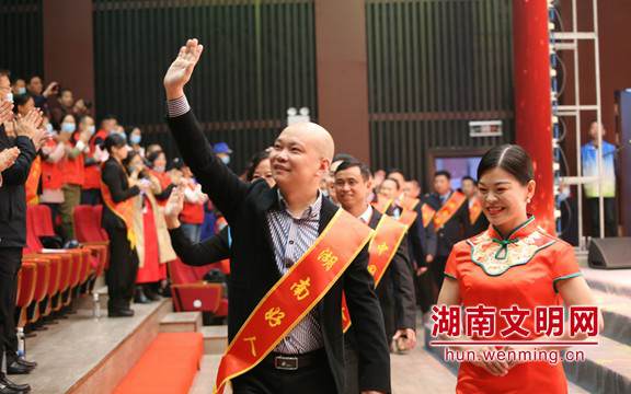 来自湖南14市州的“中国好人”“湖南好人”代表步入会场