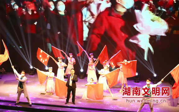 歌伴舞《不打胜仗不归乡》彰显了平江县第一人民医院援助湖北医护人员救死扶伤的英勇事迹;以“湖南好人”吴胜利为原型的小品《特殊的嫁妆》展现了其患癌症投身公益,扶贫助学的暖心举动;情景音乐剧《淬火成钢》展现出“中国好人”阳鹏英勇献身拯救44条生命的高尚品质;诗朗诵《暖光》歌颂不离不弃、悉心照顾瘫痪小叔的“湖南好人”吴玖桂;花鼓戏表演唱《等候》赞扬拾金不昧,用干净的灵魂净化城市的“湖南好人”王明刚。