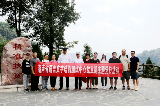 8月31日,湖南省语言文字培训测试中心党支部全体党员前往“精准扶贫”首倡之地——湘西自治州花垣县十八洞村,开展“讲党课、强党性、作表率、当模范”主题党日活动。