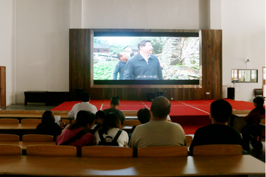 在十八洞村村民讲解员的引导下,党员们参观了精准扶贫之路展厅,观看了《十八洞村脱贫记》纪录片,并沿着习近平总书记2013年到十八洞村调研考察时的路线,参观了梨子寨、精准扶贫广场。通过实地见学,大家重温习近平总书记“实事求是、因地制宜、分类指导、精准扶贫”的嘱托,深切感受精准扶贫为十八洞村带来的翻天覆地的变化。如今,十八洞村全村铺上了沥青路,修起了游道和护栏,房屋修缮一新;村民精神面貌、村容村貌焕然一新;十八洞村通过发展乡村旅游、水果种植、特色苗绣等走上致富道路,成为脱贫致富的“模范村”。