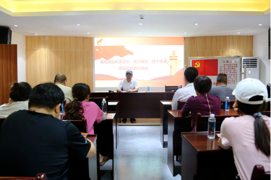 下午,中心党支部书记冯传书以“强化政治机关意识,努力做到‘四个带头’,坚强党的组织建设”为题,为中心全体党员上了一堂生动的党课。他号召大家常怀党恩,牢记初心使命,努力做到“四个带头”,做准确把握政治机关鲜明本色的明白人,做坚持落实党的组织生活制度的诚实人,做持之以恒正风肃纪反腐的践行人,做机关优良作风履职的带头人,在新起点焕发出更高的工作热情,全心全意为群众和基层做好服务。