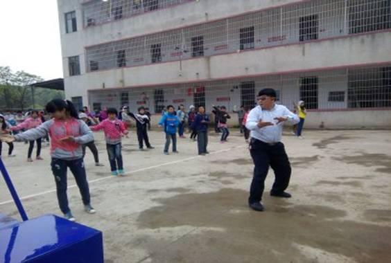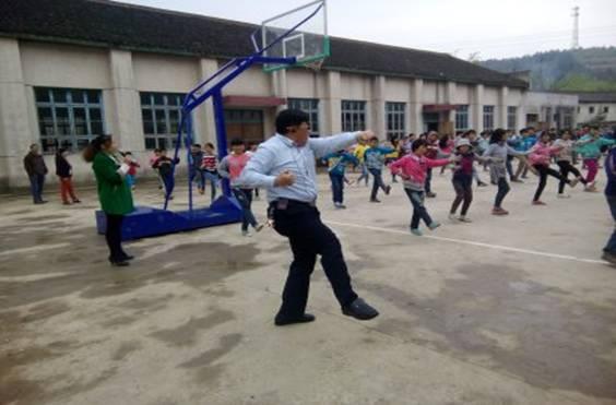 活动剪影三——南镇中学校长郭宏江亲自教学生武术操