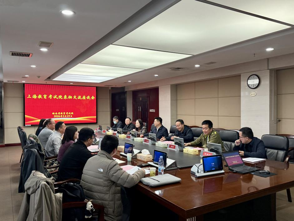 座谈会上,双方围绕高考综合改革深化、考试招生资源适配、数字化智能化转型等重点工作进行了深入交流。我院重点介绍了在“十五五”规划谋划、选考科目优化指导、特殊类型招生规范管理、AI时代招生宣传服务以及考试管理数字化转型等方面的经验做法。双方还就考试招生工作中面临的社会关切、信息宣传以及信创平台建设等共同关心的问题交换了意见。此次调研交流进一步深化了沪湘两地教育考试机构间的沟通协作,为推动教育考试事业高质量发展提供了有益借鉴。